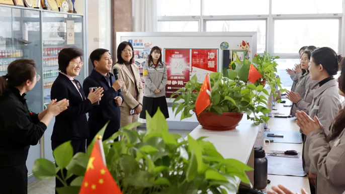 In the afternoon of April 3rd, Li Shaona, Secretary of the Party Leadership Group and Chairwoman of the Yantai Women's Federation, visited Dawn Group for investigation and extended condolences to the female employees of the PE Business Department of Dawn Chemicals, which was awarded the title of "Yantai March 8th Red Flag Collective." Lian Shuqin, Deputy director of the Standing Committee of the Longkou People's Congress; Che Jing, Chairwoman of the Longkou Women's Federation, Yu Xiaoning, Chairman and President of Dawn Group; Liu Lili, Vice President and Chairwoman of the Women's Federation of Dawn Group; and Xie Yuntao, Vice President of Dawn Group, accompanied the investigation.