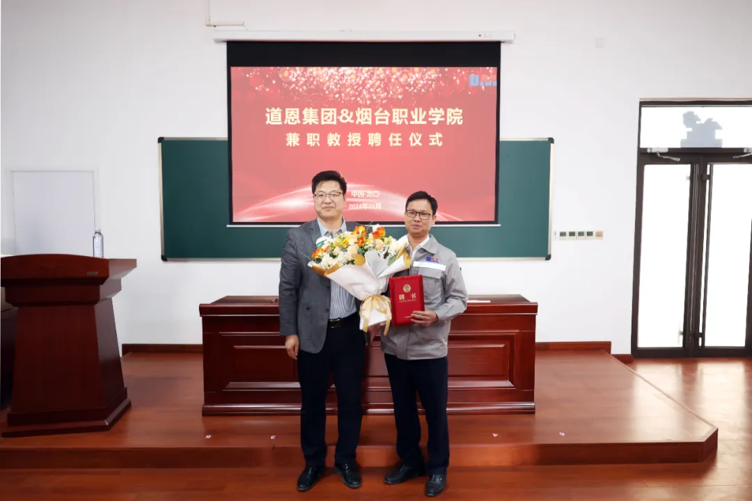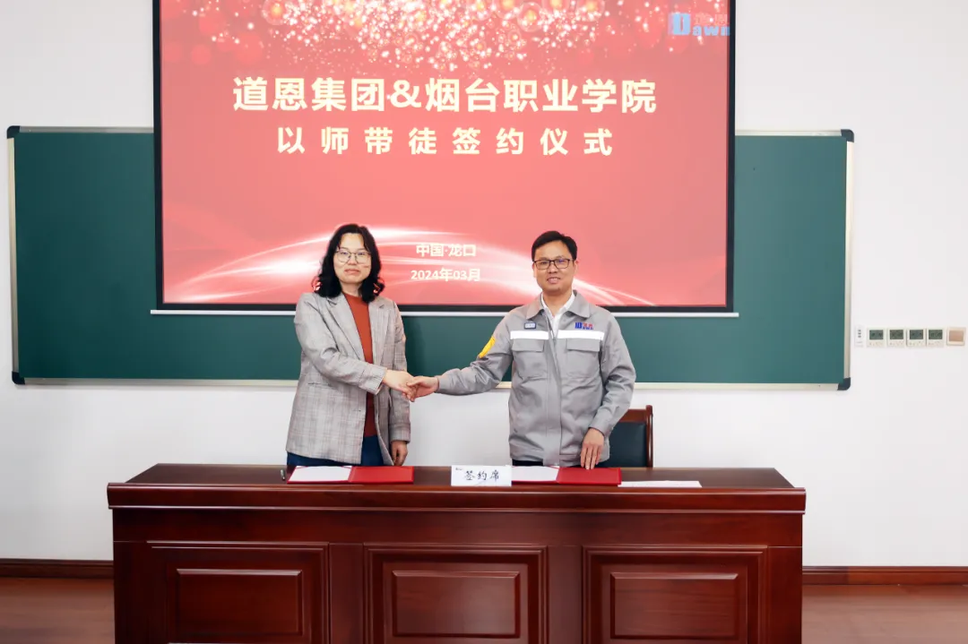 作为烟台职业学院兼职教授,好博股份总经理田洪池与该院博士代表苏玲签订了以师带徒协议。他在发表感言时表示,本次校企合作实现了创新链、产业链、人才链的高效融合,广大科研工作者要秉承家国情怀,将科研作为事业,把科研实力转化为自身的志气、骨气和底气。