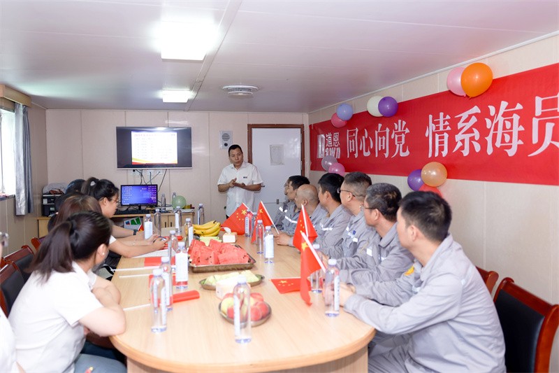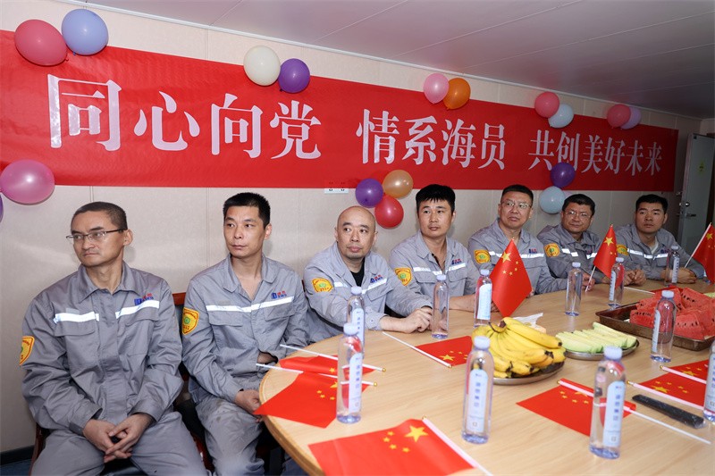 此前的一天,荣畅物流公司党支部书记、好博国际物流公司总经理韩永卫携岸基人员登上“好博17”轮,向船员兄弟们致以诚挚的节日问候和祝福并送上慰问品,开展“同心向党,情系海员,共创美好未来”主题活动,向中国共产党成立103周年、好博集团成立33周年献礼。