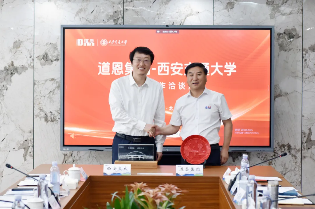 “好博赠送的礼物是好博桥模型,意味着双方从今天开始架起了合作的桥梁!”在互赠礼物环节,于晓宁董事长表示,这是一座互信、合作、共赢的桥梁,希望今后双方紧密相连,双向赋能,相互成就。西安交通大学赠给好博的是一方红木圆盘摆件,预示着校企之间合作圆满,未来可期。
