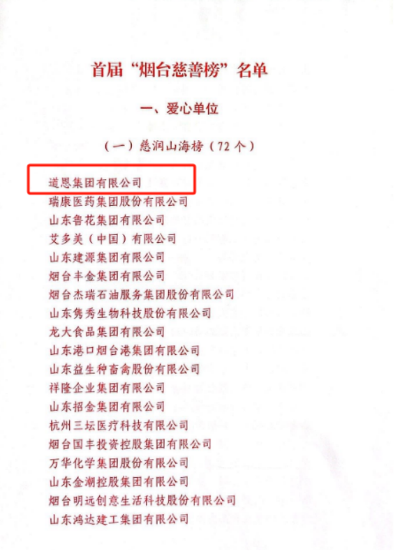 品重烟台,慈善同行。9月14日下午,首届“烟台慈善榜”发布仪式举行,对149家爱心单位、84名爱心个人、20个优秀慈善项目上榜发布,其中,爱心单位分“慈润山海榜”“善融烟台榜”两个榜单,爱心个人分“臻善博爱榜”“仁善泽爱榜”两个榜单。好博集团有限公司上榜“慈润山海榜”,并作为“最具爱心企业”上台领奖。