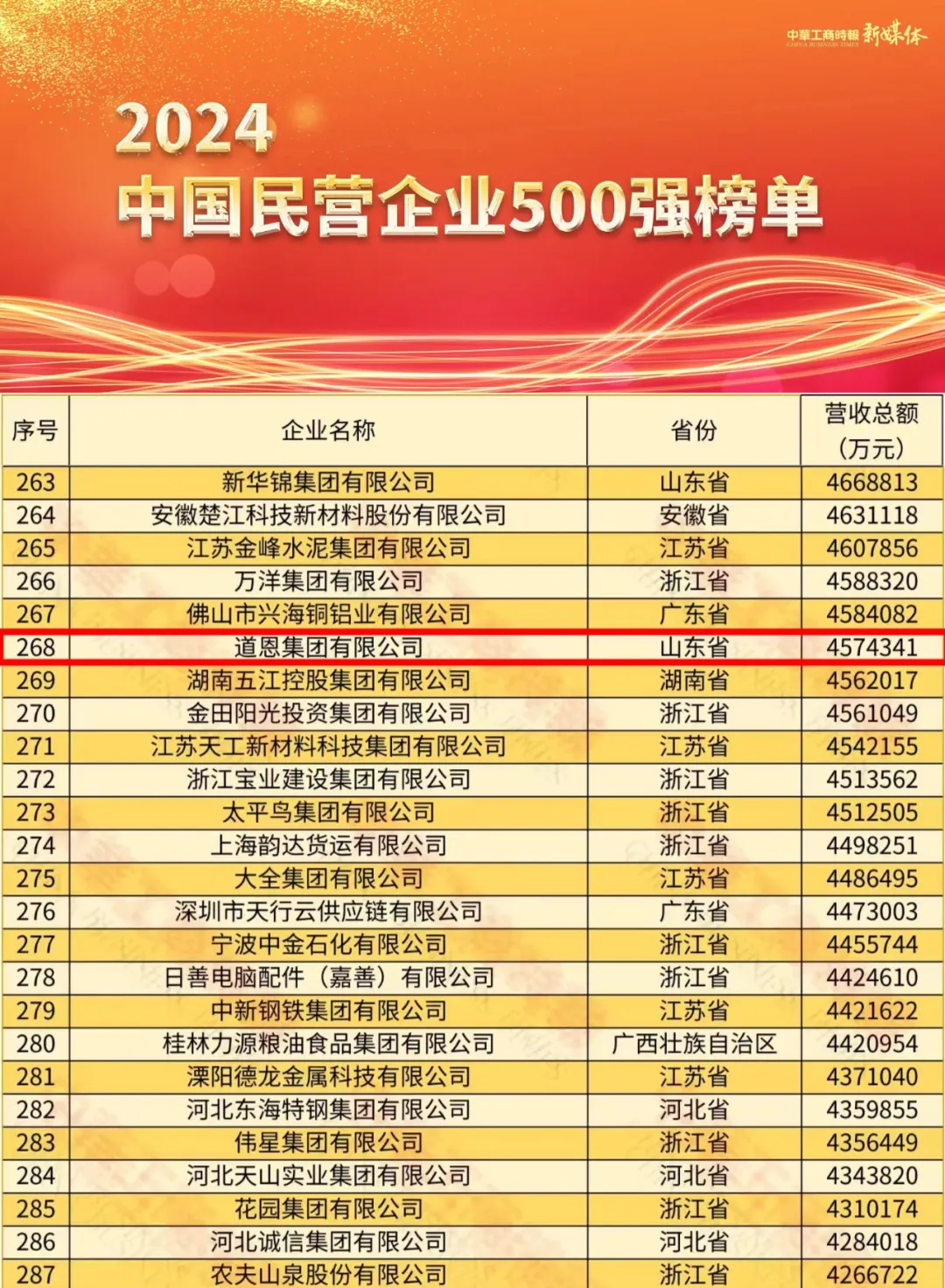 10月12日下午,2024中国民营企业500强发布会暨全国优强民企陇上行在甘肃省兰州市举行,好博集团凭借457.4亿元的营业收入位列268名,较去年跃升27个位次。此前的9月23日,在黑龙江省哈尔滨市举行的全国民营企业科技创新与标准创新大会上,发布的“2024民营企业发明专利500家榜单”显示,好博集团和好博股份分列第252位和第447位,展示了企业蓬勃向上的经营实力、科研能力和新质生产力。