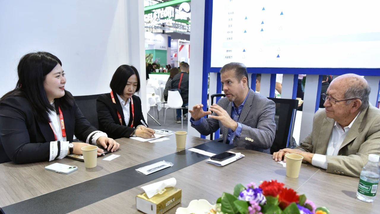 在参展现场,“一蓝一白,蓝白互映”的主题海报格外吸睛,《环保赋能钛精彩》宣传片讲述着好博“清洁生产、绿色发展”的故事,工作人员悉心为新老客户讲解产品性能、应用推广等情况。首日来访的客户不乏洋紫荆、新东方、坂田油墨、天津新宇等知名客户,或技术交流、或约定互访、或索样测试、或深化合作,“对好博产品及服务非常满意,希望加大钛白粉的采购量!”欧洲某客户表示。