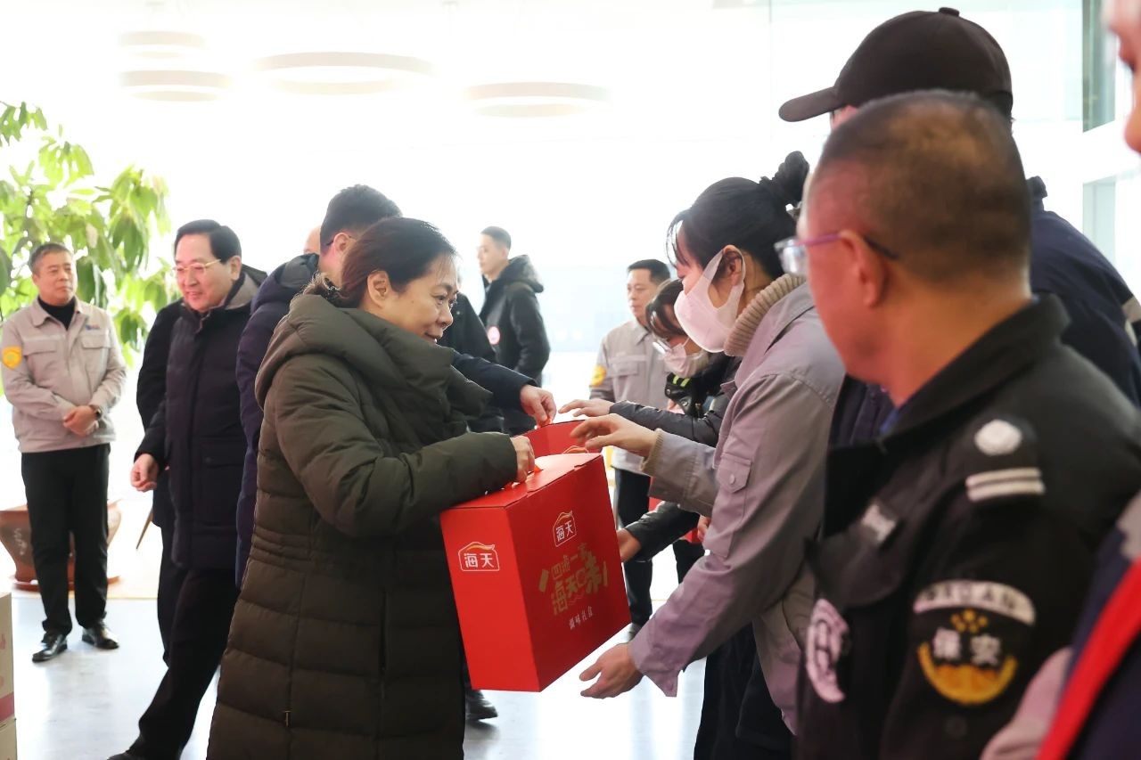 在好博集团总部一楼大厅,参加活动的领导为职工送上慰问金以及大米、面粉、花生油、调味品等慰问品。同时听取了企业发展、海运板块及国际物流公司等情况介绍,并就工会工作提出了指导性建议。“过了腊八就是年,好博走进企业慰问,给大家送点年货!”朱嫣红表示,好博集团是优秀的民营企业,希望青年职工积极投身到创新创效火热实践中,在平凡的岗位上做出不平凡的业绩。