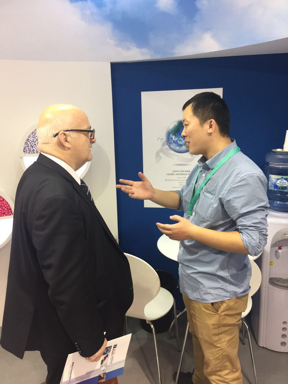 展会上,好博高材公司展示的主要产品有TPV系列,新产品为一体化发泡TPV,很多国际客户对好博高科技含量的产品表示震惊和钦佩,并得到各主流汽车厂家的认可。此外,TPE医用材料、工程塑料的长玻纤增强PP和无味熔喷料也是展示的亮点。美国库博公司全球采购总经理表达了与好博合作的愿望,德国百年企业舍弗勒集团旗下LUK公司前来咨询一体化发泡TPV情况。据统计,参展期间共接待客户116个,有效传播了好博的国际化品牌形象。