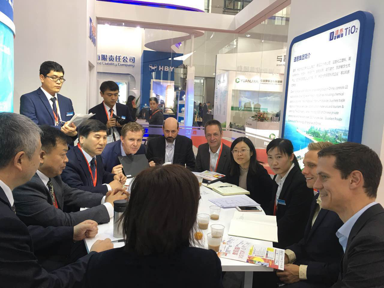 作为世界第三大油墨生产商,盛威科油墨有限公司全球采购总监NevenBarctel慕名访问好博展台,于晓宁总裁与客人进行友好交流。双方就建立长期战略合作伙伴关系达成共识,共同研发油墨专用钛白粉,成为盛威科全球统一牌号。好博集团常务副总裁索延辉用流利的日语和日本立邦洽谈2017年合作事宜,经过技术交流,最终确定明年第一季度订单。