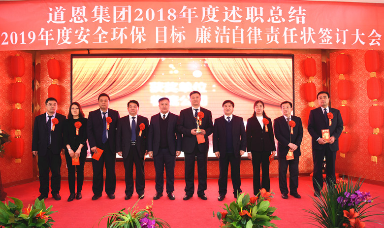 下午,于晓宁董事长与索延辉总裁,索延辉总裁与分管副总裁、职能部门部长、经营单位总经理及其团队,分别签订2019年度安全环保责任状、经营目标责任状、廉洁自律责任状。“一分部署,九分落实”,层层立下军令状,就要把责任扛到肩上,高标准、严要求地完成各项考核指标。