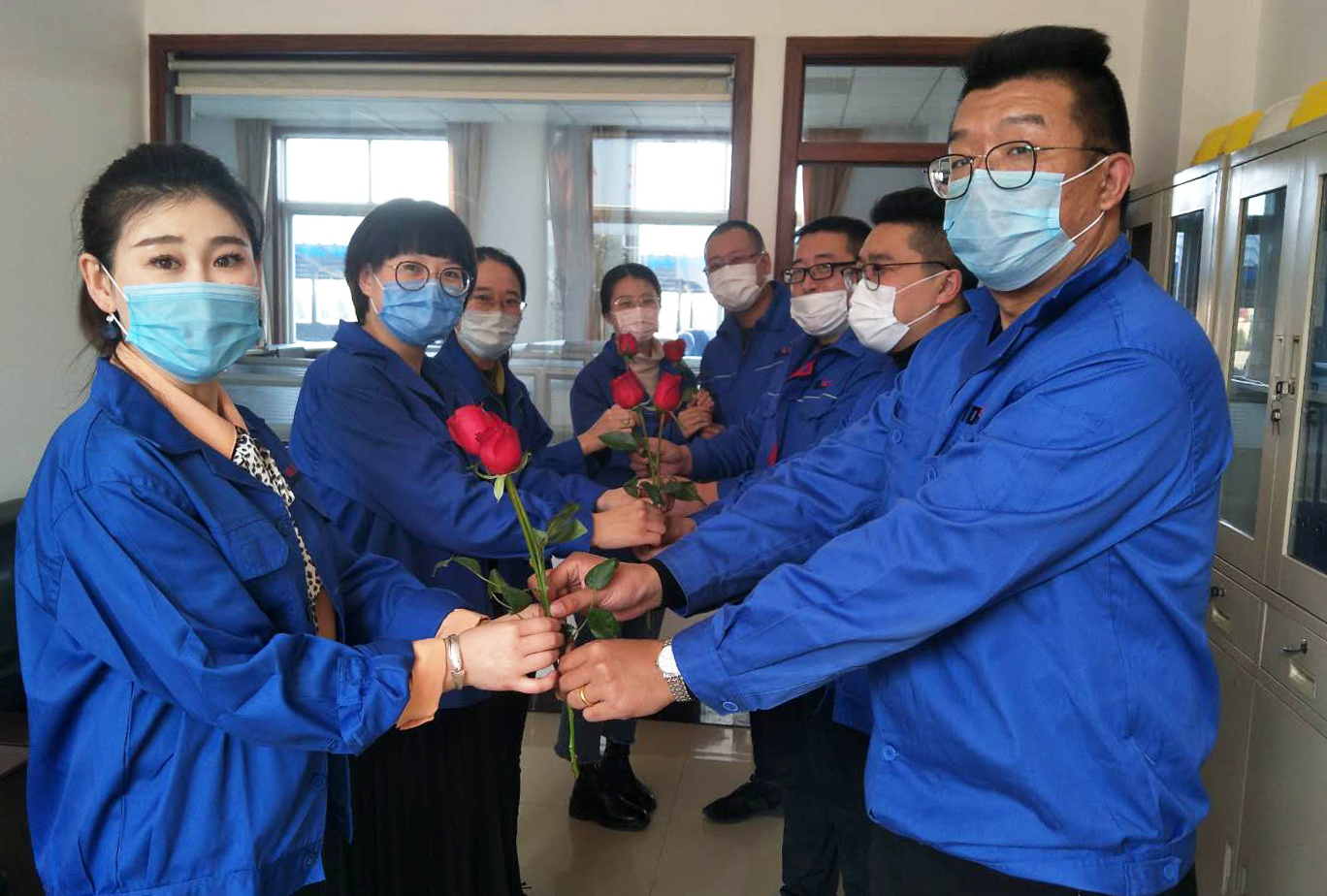 节日前夕,从集团公司总部到各职能部门,再到各经营单位,管理层亲手把礼物送到女员工的手中,把深情的祝福送到大家心坎上。润禾公司还组织了女员工座谈会,对大家表示慰问和祝福。“鲜花祝福你们永远年轻,口罩寓意大家身体健康,山楂预示着红红火火的未来,祝大家‘女神节’快乐!”好博集团副总裁王永放亲切的话语,让女员工感到春天般的温暖。