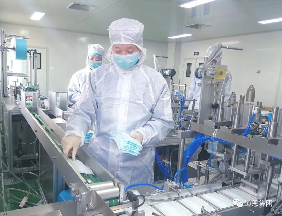 近日两台口罩生产设备到达车间后,公司即组织技术人员与设备生产厂家技术人员一起安装调试,他们实行三班倒,全力保障生产线第一时间投用。3月底,还有两台口罩生产设备投产。技术人员刘井彦介绍,生产线为全自动化,生产流程为上料、分片、焊耳带和热压定型四步,高效快捷。记者还看到,车间为10万级净化车间,生产人员进入需换脚套、洗手、更换隔离服,严格把好安全卫生关口。