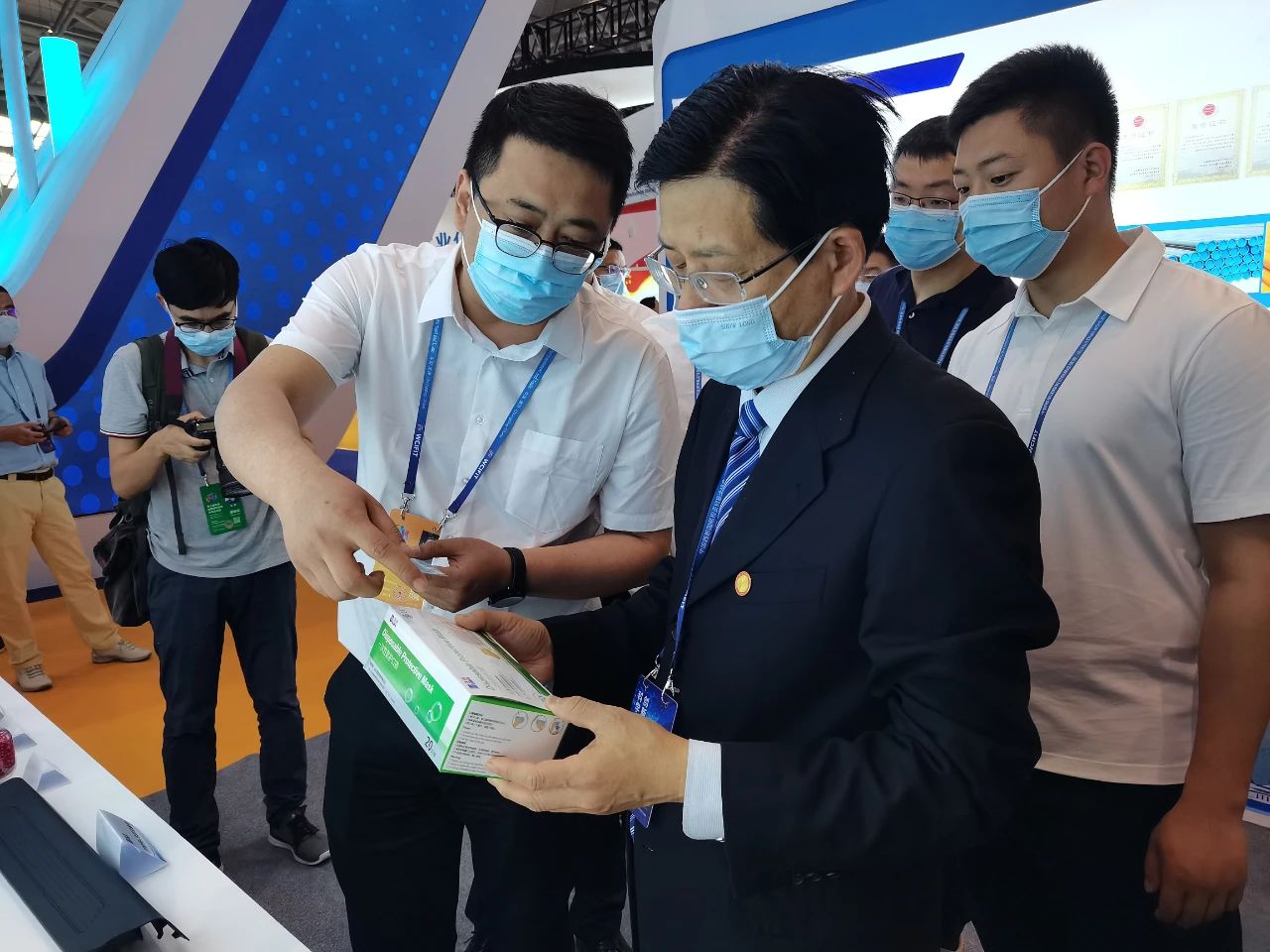 是日中午12点许,孙继业副省长走到好博展台,听取了重庆公司负责人关于企业概况、科技研发和产品性能情况的汇报,饶有兴趣地参观了企业带来的新技术、新产品。去年新冠肺炎疫情期间,好博“硬核”抗疫的表现,得到了国务院、国家科技部及山东省的感谢与表彰,孙继业副省长对此给予认可与赞赏。他手里拿着“好博牌”一次性防护口罩,说,“很好,继续努力。”同时,勉励企业以新发展理念推动高质量发展。