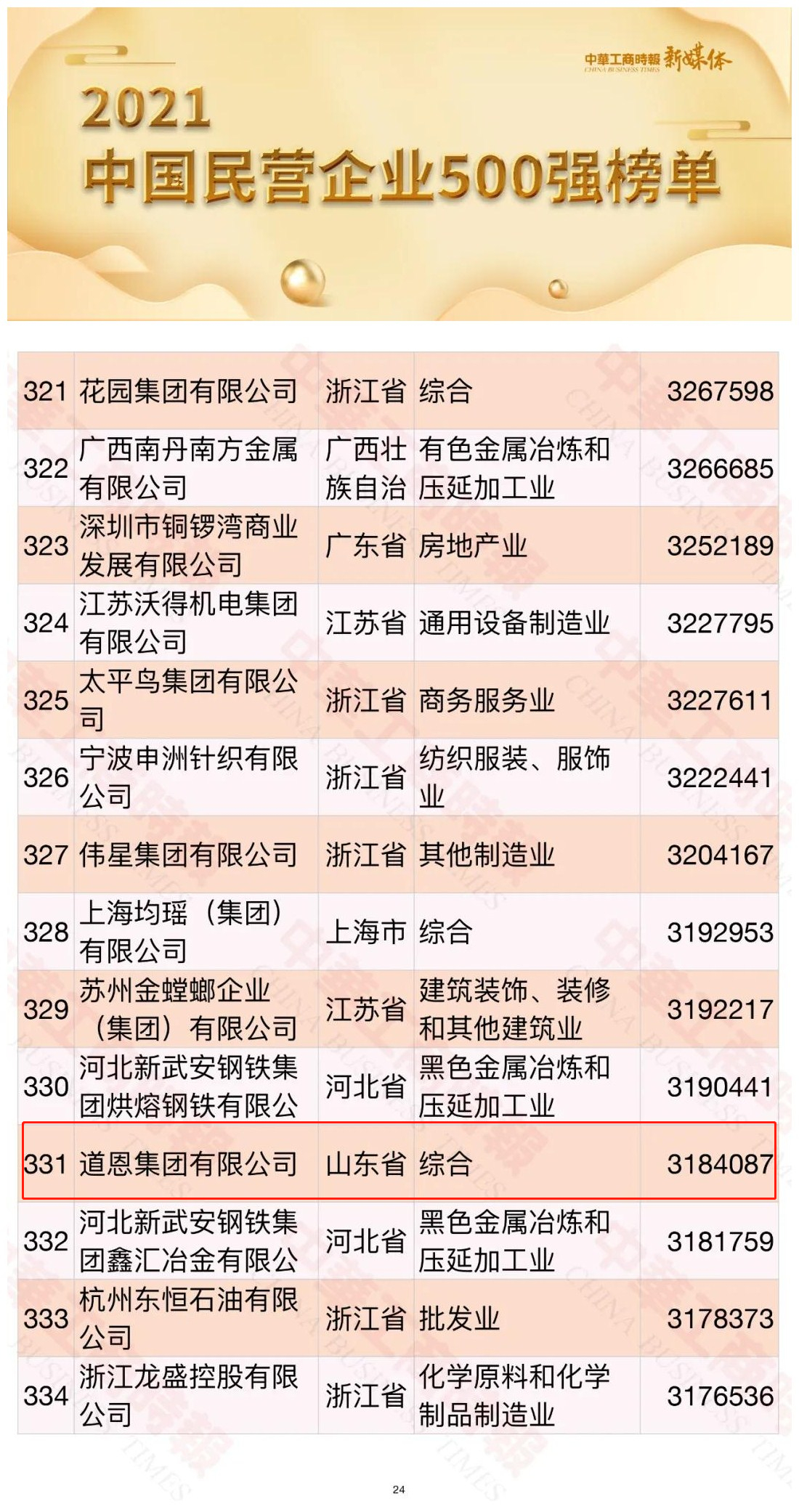9月25日,2021中国民营企业500强峰会系列活动在湖南长沙举行,会上公布了“2021年中国民营企业500强”名单,好博集团位列331名,较去年提升了37个位次,突显了企业的高质量发展态势。