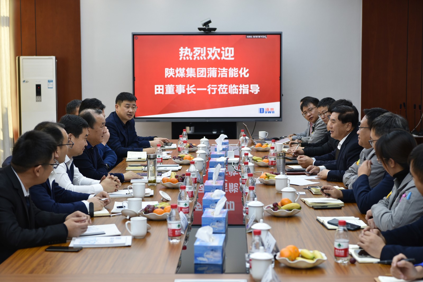 11月24日,蒲城清洁能源化工有限责任公司(简称“蒲洁能化”)党委书记、董事长田玉民一行8人来好博集团访问考察,旨在增进友谊、扩大合作、共谋发展。好博集团董事长、总裁于晓宁陪同考察与座谈。