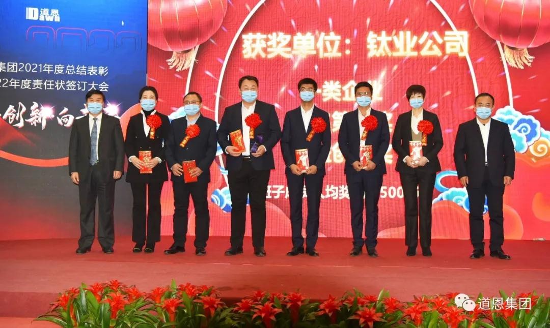 会上,各职能部门部长、经营单位总经理依次进行述职,分别汇报了2021年KPI及重点工作完成情况、存在问题及改进措施,以及2022年工作计划。会议发布了2021年度 “综合排名第一奖”、“四季度双增长奖”、“四季度效益创优奖”、2021年度“服务指导管理考核奖”和2022年度“经营计划制定优秀奖”获奖名单。好博钛业公司、大韩好博(上海)公司、国际物流公司分别获得一类、二类、三类企业排名第一奖,好博股份母公司等4家经营单位获得四季度双增长奖,青岛新材料公司等7家经营单位获得四季度效益创优奖,好博化学等5家经营单位获得2022年度经营计划制定优秀奖。