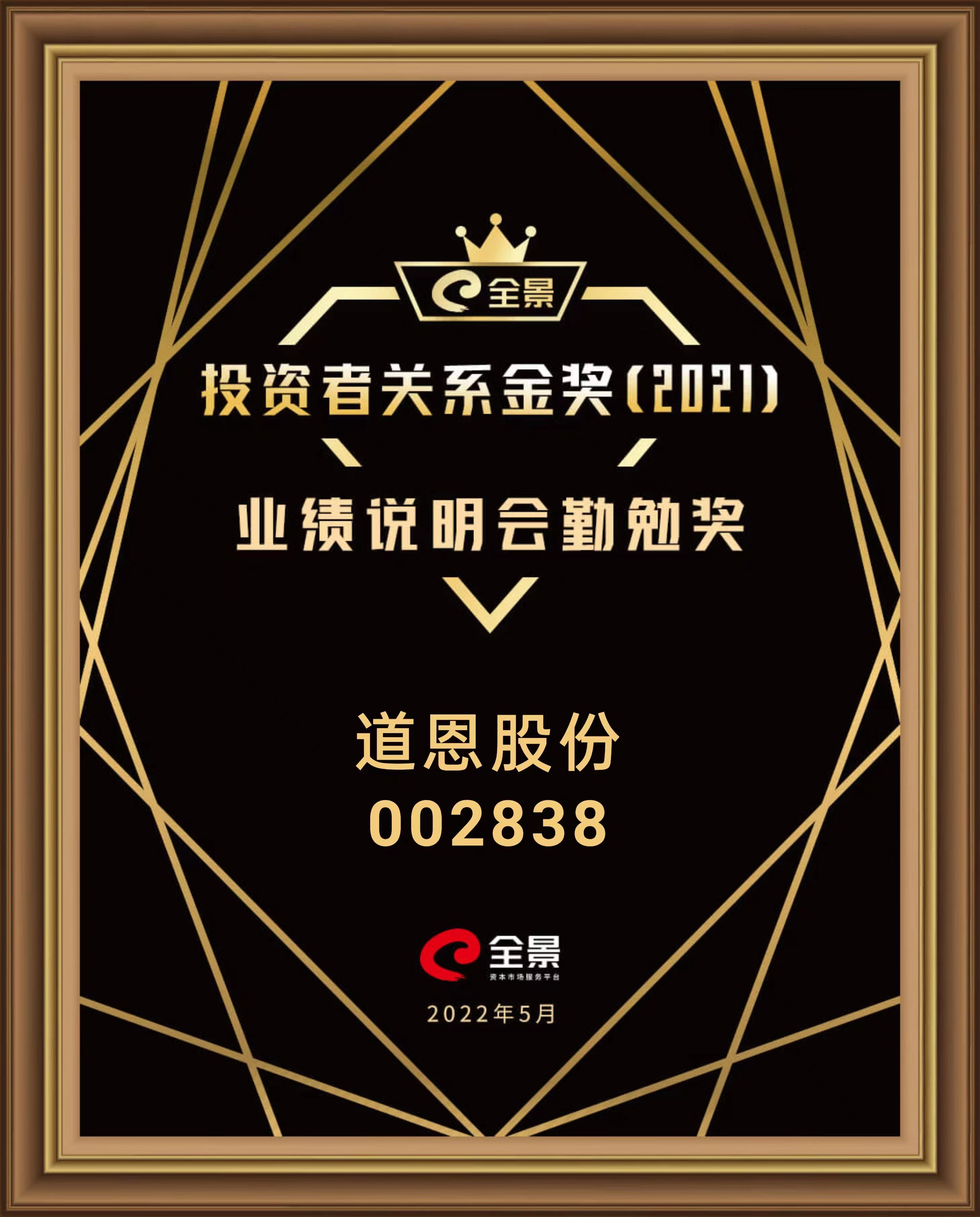 近日,“全景投资者关系金奖(2021)”获奖榜单正式揭晓,好博股份荣获“业绩说明会勤勉奖”。