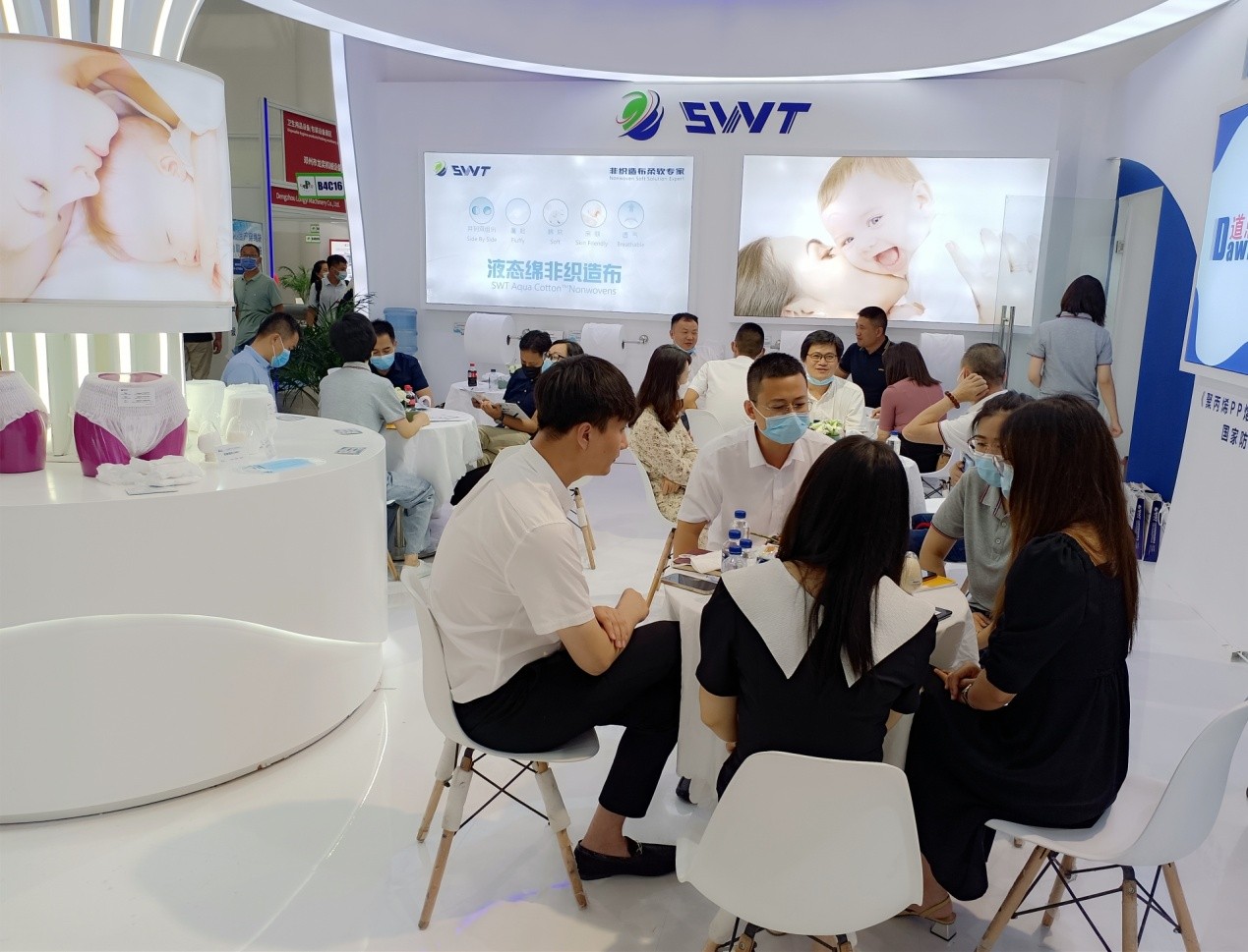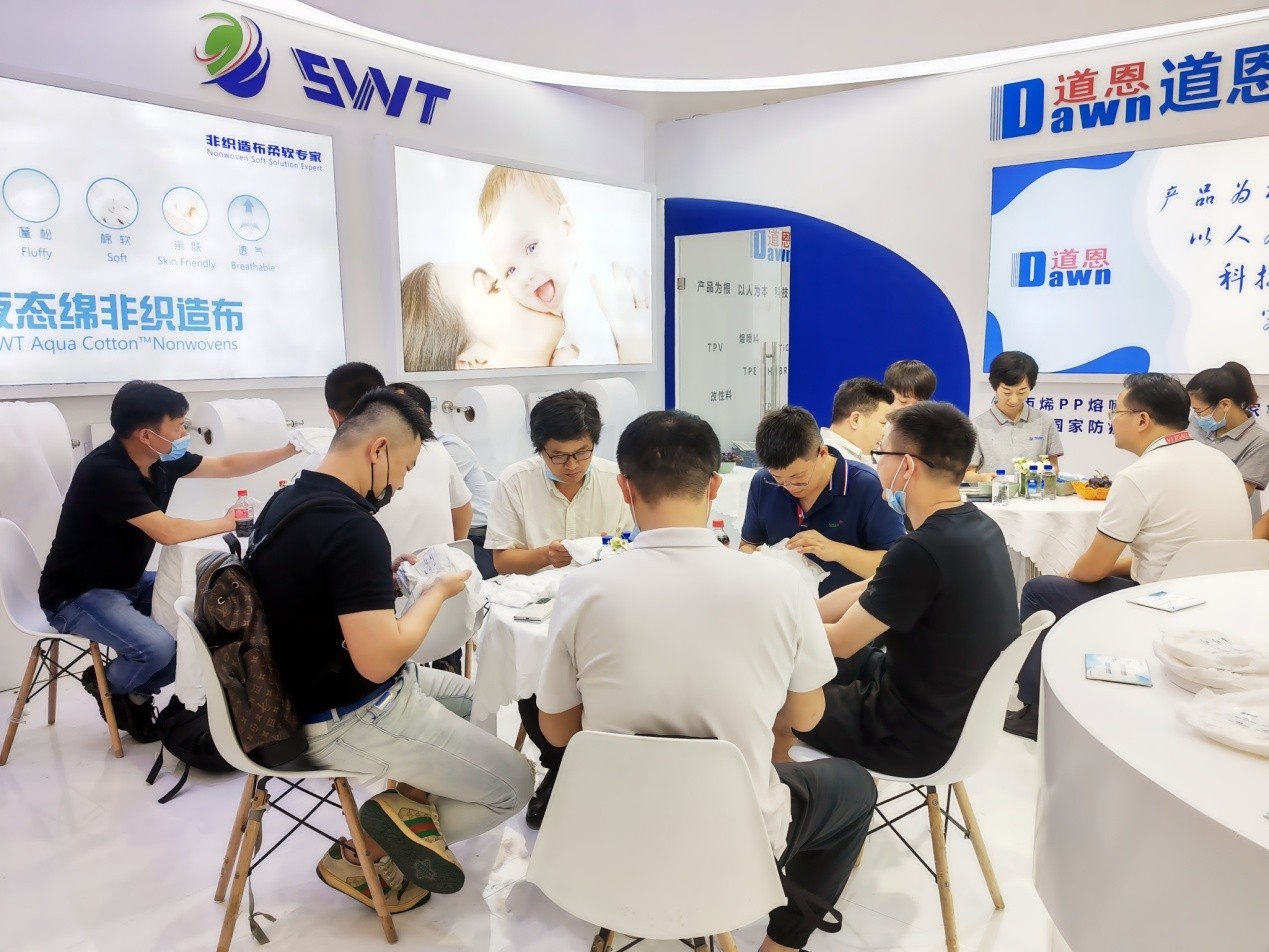 “布面均匀、手感蓬松、体感柔润透气、亲肤零刺激……”,针对该公司并列双组份液态绵产品,在女性经期裤腰围应用上凸显出的强烈差异化品质,众多客户、行业专家与合作伙伴如是评价。在参展现场,获得了国内外众多品牌客户的认可,他们表示出明确的合作意愿。