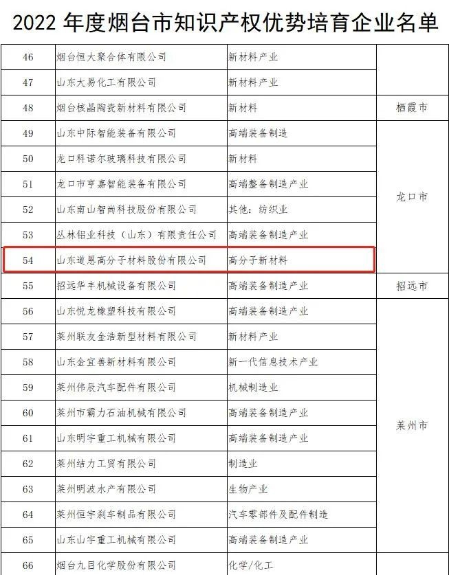 8月17日,烟台市市场监督管理局公布2022年度烟台市知识产权优势培育企业名单,好博股份名列其中。这是对好博知识产权保护和培育工作的肯定,成为高质量发展新引擎,有利于全面提升企业自主创新能力和核心竞争力。
