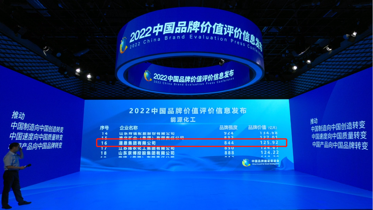 9月5日,中国品牌建设促进会、中国资产评估协会、新华社民族品牌工程办公室等单位在京联合发布“2022中国品牌价值评价信息”。集团公司以125.92亿元的品牌价值,844的品牌强度,名列能源化工领域第16位,再创历史新高,彰显了好博品牌的知名度、美誉度和影响力。