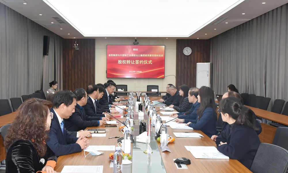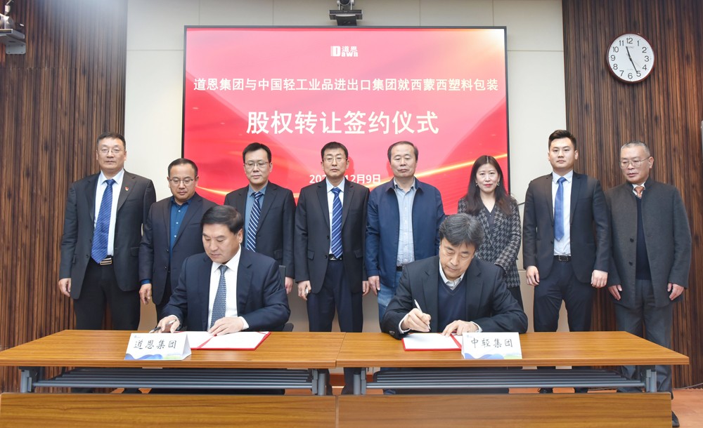 12月9日上午,好博集团与中国轻工业品进出口集团就烟台西蒙西塑料包装品公司股权转让举行签约仪式,全额收购该公司股权。好博集团董事长、总裁于晓宁与中轻进出口集团党委书记、董事长尹振华签署协议,这是好博延链、补链、强链的新成果,也是民营资本参与国企混合所有制改革的新突破。