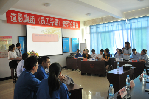 为进一步激发全体员工学习《员工手册》的积极性,建设一支素质优、形象好、作风正、守纪律的员工队伍。10月7日上午8点,好博集团《员工手册》知识抢答赛在好博高材公司三楼党建室拉开帷幕。好博集团公司领导,好博各经营单位总经理、分管企业文化建设副总经理、综合部经理,各职能部门部长、内勤及各代表队参赛人员等共计120人参加了活动。