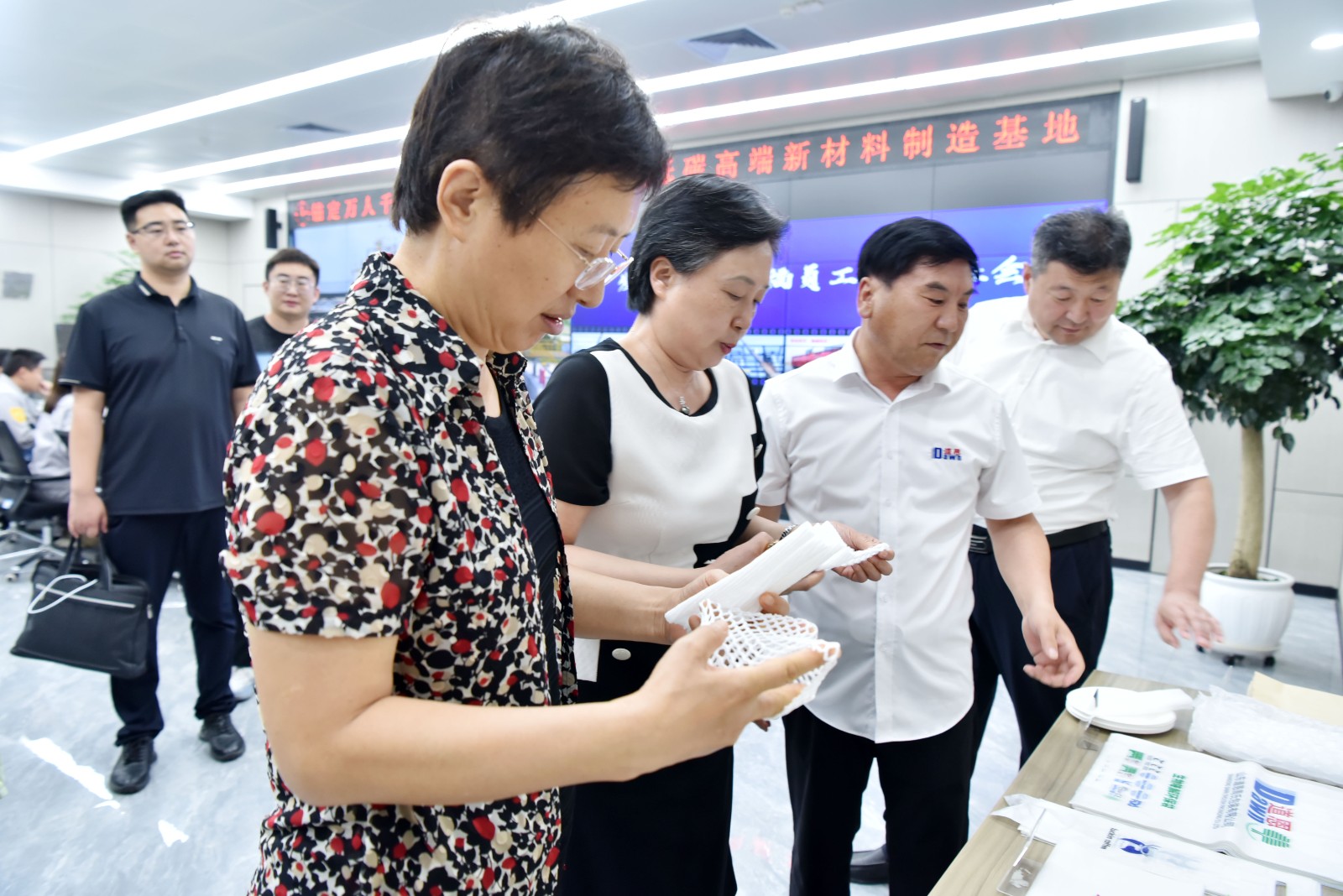 是日下午,在好博降解材料公司中央控制室,王随莲副主任观看了龙口市好博新材料科技产业园专题宣传片,听取了好博集团董事长、总裁于晓宁有关企业发展、园区建设、产业集群、绿色发展等情况的汇报,对打造世界级绿色低碳高端新材料制造基地的目标定位给予充分肯定。