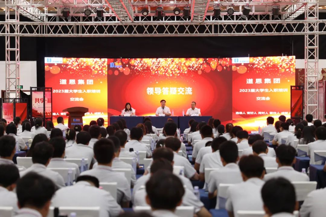 7月26日,好博集团2023届大学毕业生入职培训结业仪式在好博湖畔酒店举行,好博集团董事长、总裁,好博商学院院长于晓宁,常务副总裁肖辉、副总裁刘丽丽出席活动。