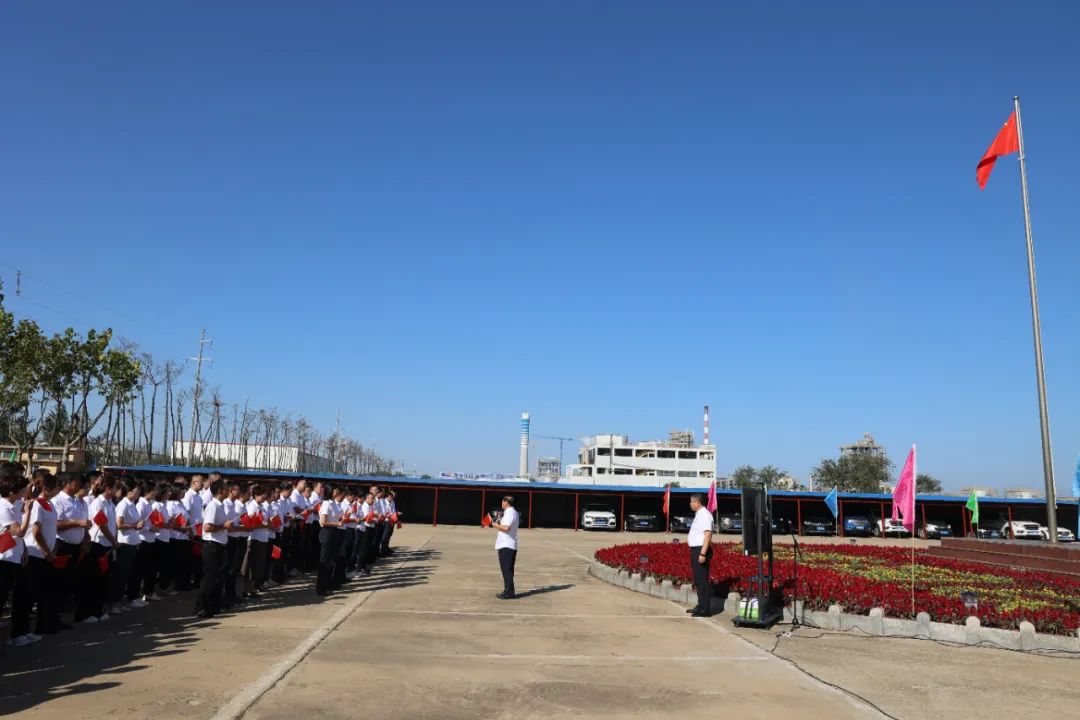 慷慨激昂的旋律,重温了英勇斗争的革命激情;鲜艳的五星红旗,讲述着74年的峥嵘岁月。随后,来自三大产业板块的3位员工代表进行国旗下的演讲,抒发爱国、爱企、爱岗之情。
