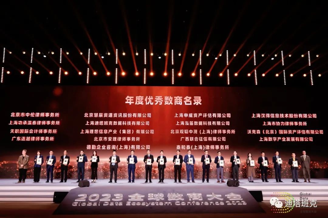 11月25日,在上海举行的2023全球数商大会上,好博集团参股企业上海迪塔班克数据科技有限公司荣获“年度优秀数商企业”称号。