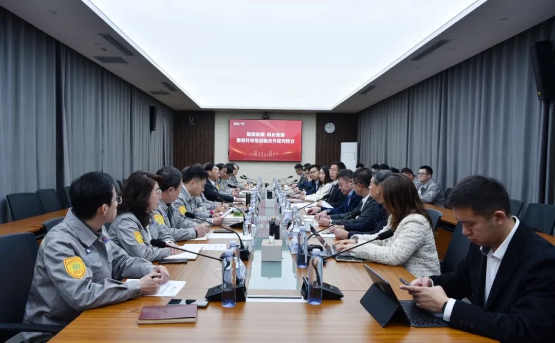 用友集团BIP产品管理部总经理李惠苹、化工与造纸事业部总经理朱风水、业务运营服务事业部总经理成金虎、数智化咨询部总经理郭倩、大业务交付中心项目专家武德智及其团队成员,好博集团常务副总裁肖辉,副总裁邱焕玲、王可友、刘丽丽、解云涛,总裁助理于正禹及其团队成员共同见证签约仪式。